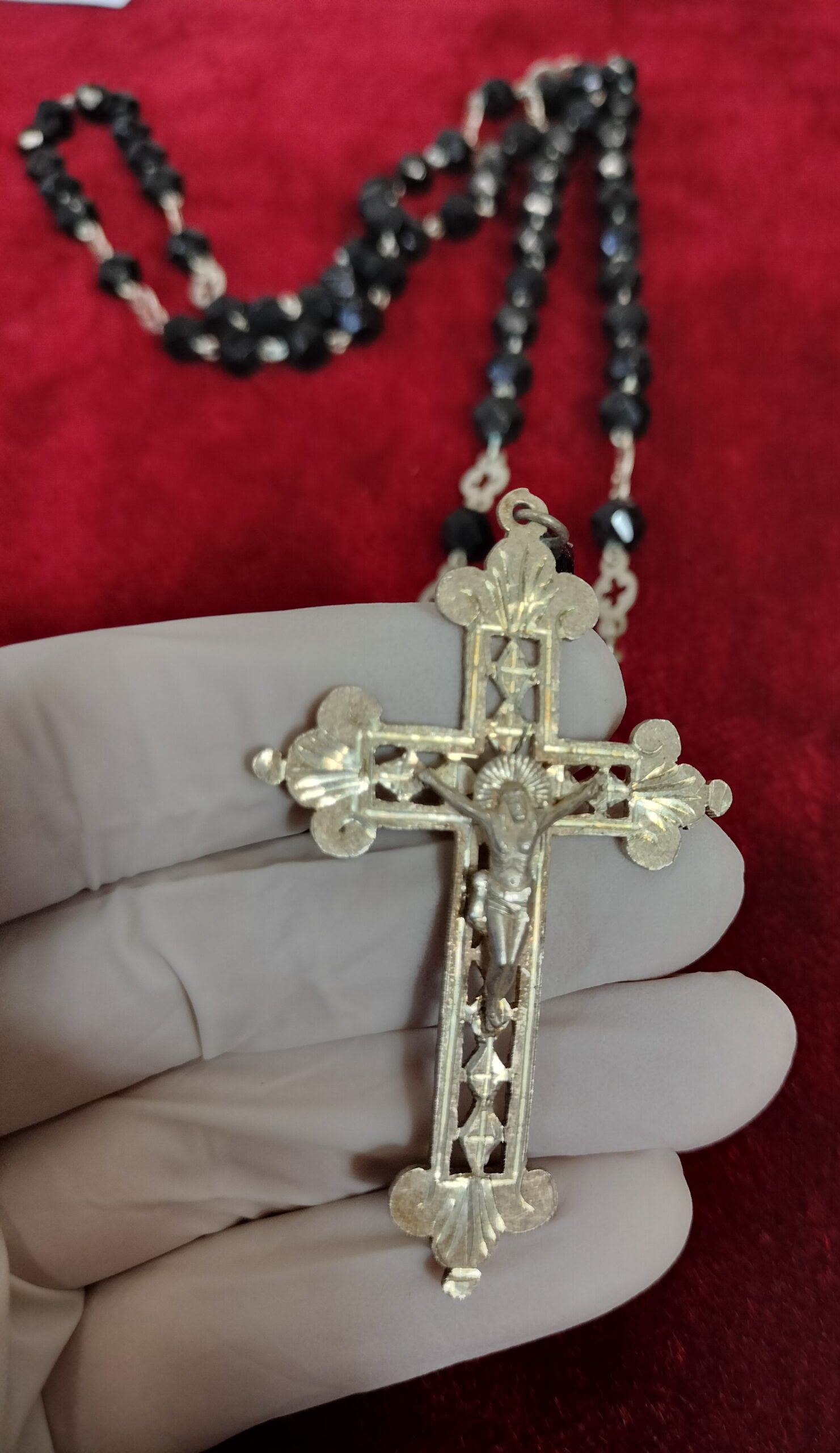 VER IMÁGENES PARA COMPROBAR EL ESTADO REAL. LAS IMÁGENES FORMAN PARTE DE LA DESCRIPCIÓN. ANTIGUO ROSARIO CON CRUCIFIJO. PLATA Y CUENTAS DE AZABACHE. BUEN ESTADO GENERAL, UNA CUENTA SUELTA. VER IMÁGENES. MEDIDAS: 46,5 CM LARGO. CRUZ: 5,5 X 3,8 CM.