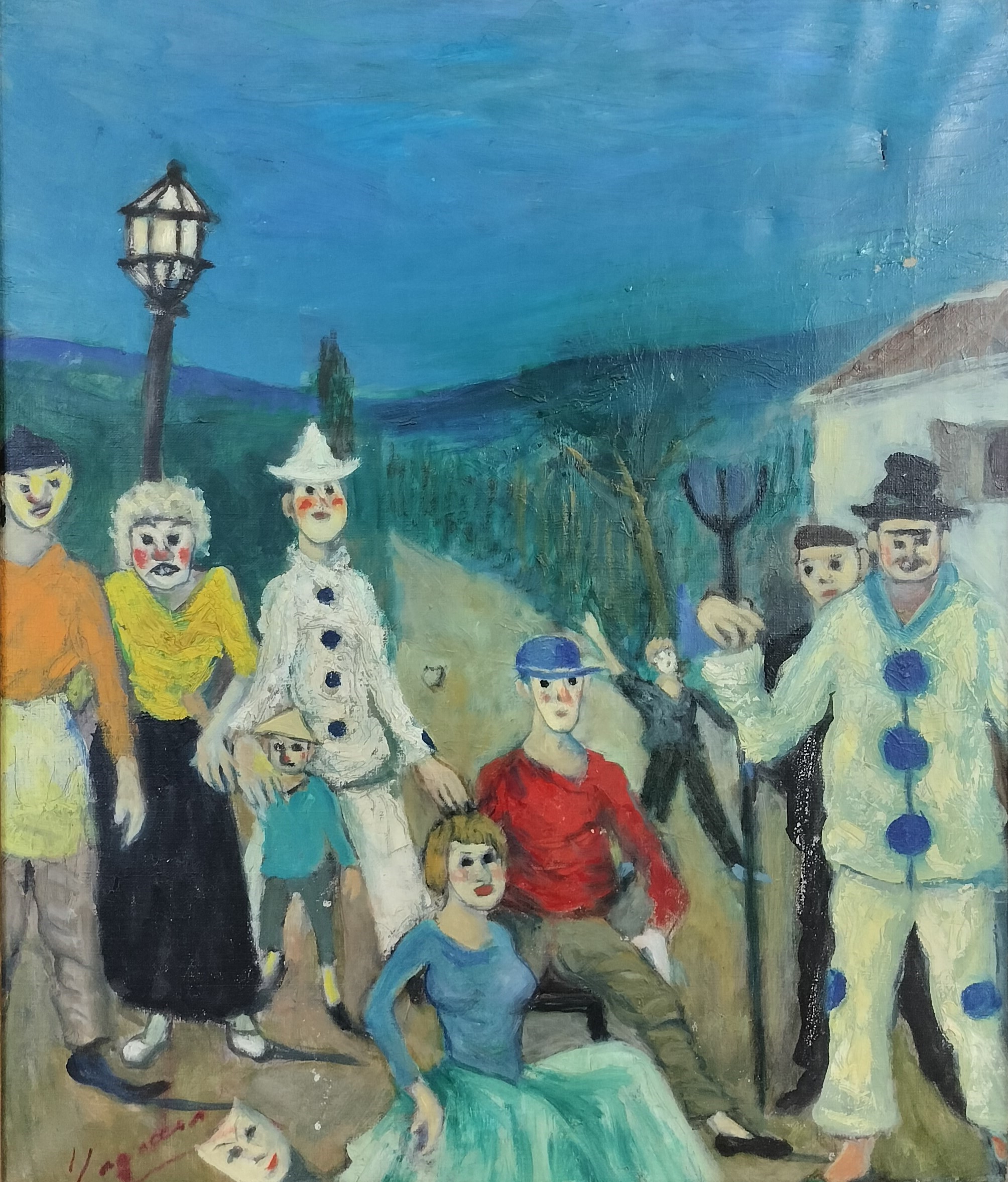 CARNAVAL EN LA ALDEA. FIRMADO YAGO CÉSAR. ÓLEO SOBRE LIENZO. ESPAÑA. 1965