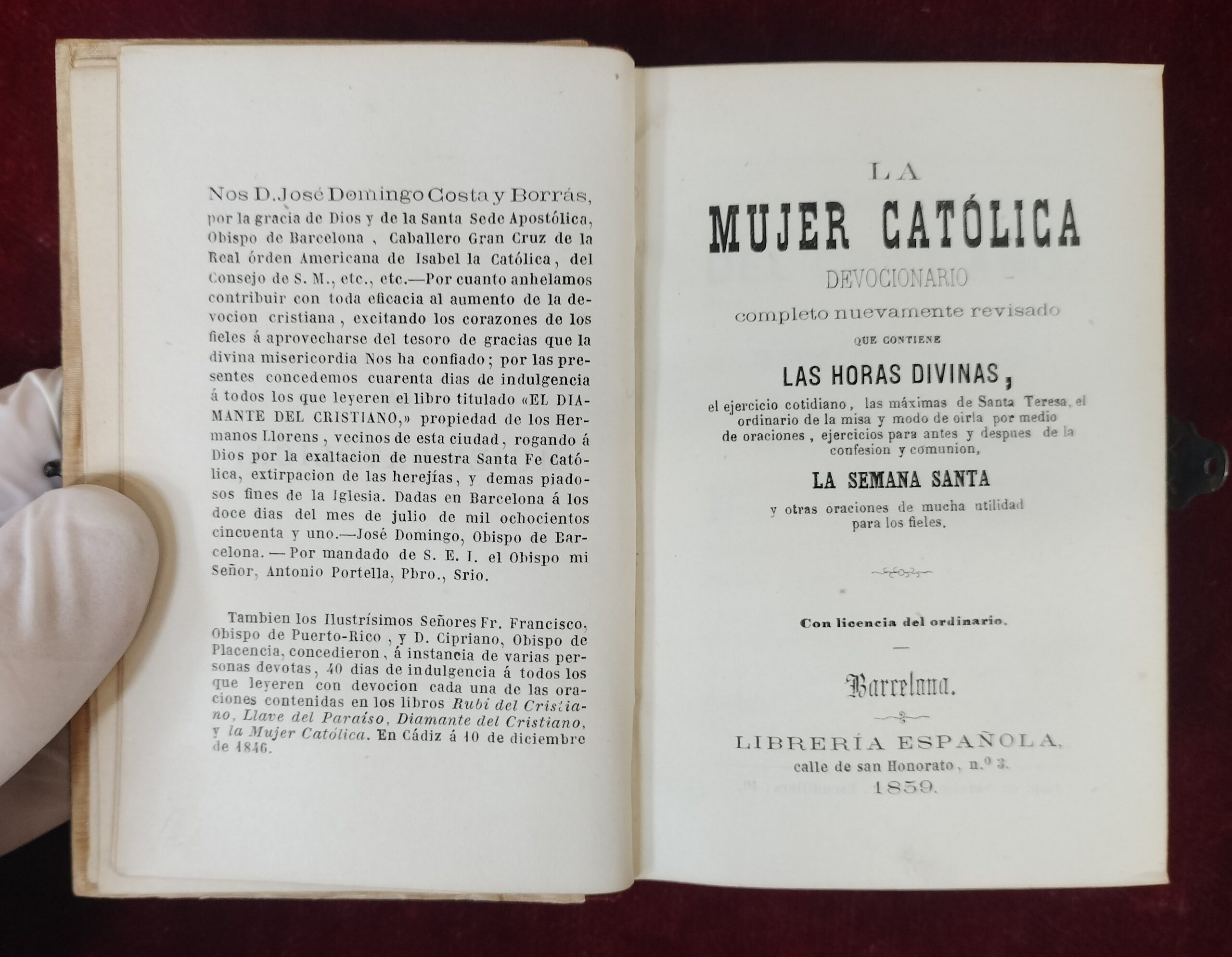 LA MUJER CATÓLICA. DEVOCIONARIO COMPLETO. BARCELONA, LIBRERÍA ESPAÑOLA. 1859.